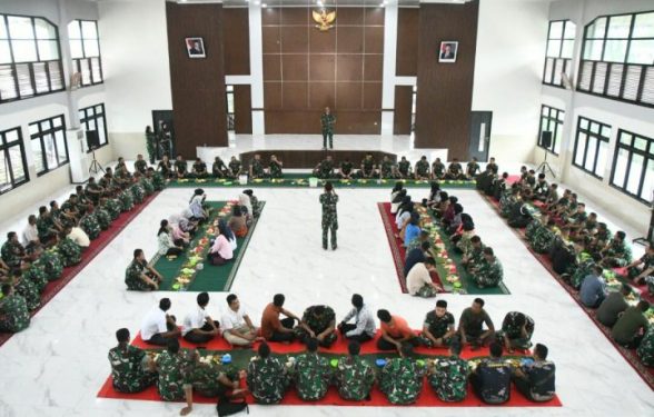 Hadir ditengah-tengah prajurit, PNS dan Persit KCK, Danrem 044/Gapo Brigjen TNI Adri Koesdyanto yang didampingi Ibu Ketua Persit KCK Koorcab Rem 044, Ibu Veranita Adri Koesdyanto, Jumat (13/6/2025).