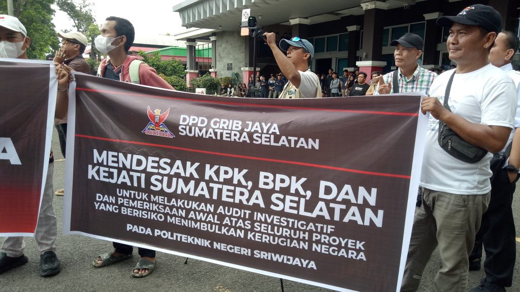 Ratusan Massa Gabungan Organisasi Masyarakat (Ormas) yang terdiri dari Raja Sriwijaya Yan Hariranto, S.H.,MH, M.Si.beserta Koalisi Aktivis Rakyat Bawah (KARB) DPP Forum Cakar Sriwijaya Gerry Harry Wijaya di dampingi Ketua DPC Cakar Sriwijaya Kota Palembang Edy Medan dan jajaran , Ketua DPD GRIB jaya Sumsel Hasbi Sanaki dan jajaran , Ketua Harimau Sumatera, Satria Amri Ramadhan didampingi Tungan Selaku Panglima Harimau Sumatera dan beserta jajaran dan serta Risky Pratama Saputra ,SE , Selaku Ketua Koalisi Aksi Masyarakat Peduli Kota Palembang , dan jajaran nya , menggelar aksi demonstrasi di depan Gedung Politeknik Negeri Sriwijaya (Polsri) Palembang pada Senin, 8 Desember 2025.