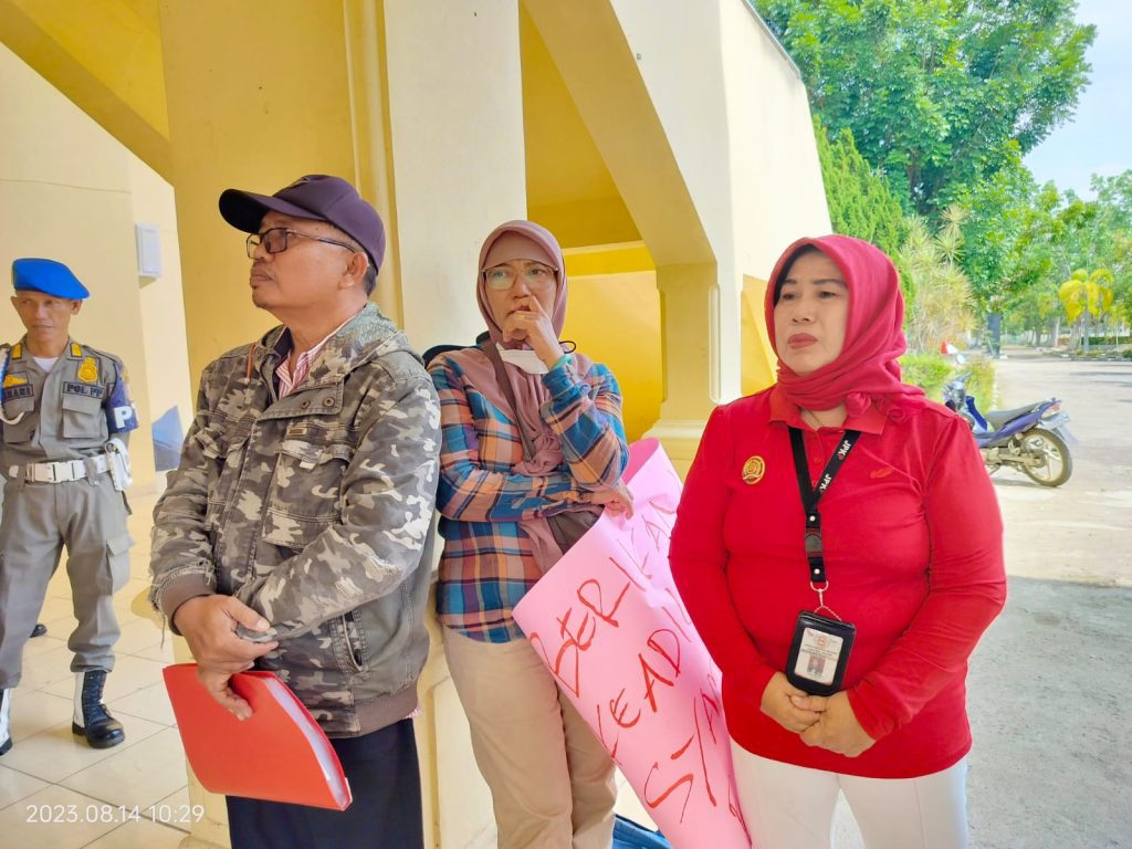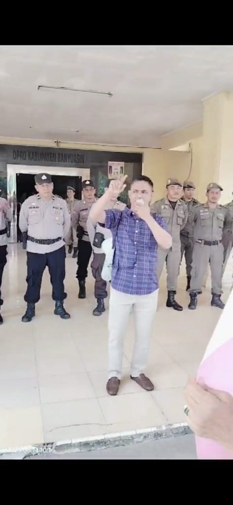 Puluhan Massa Aksi yang tergabung dalam Dewan Pengurus Daerah Jaringan Pendamping Kebijakan Pembangunan (JPKP) Kabupaten Banyuasin bersama JPKP DPW Sumatera Selatan yang di Gelar di Kantor DPRD Banyuasin. Selasa ( 15/8/2023).