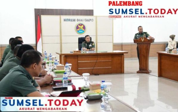 Danrem 044/Gapo Brigjen TNI Muhammad Thohir, S.Sos., M.M., memimpin Rapat Evaluasi Program Kerja dan Anggaran TA. 2023 dan Rencana Penarikan Dana (RPD) TA. 2024, bertempat di Aula Makorem 044/Gapo Jalan Jenderal Sudirman KM 4,5 Palembang, Kamis (28/12/2023).